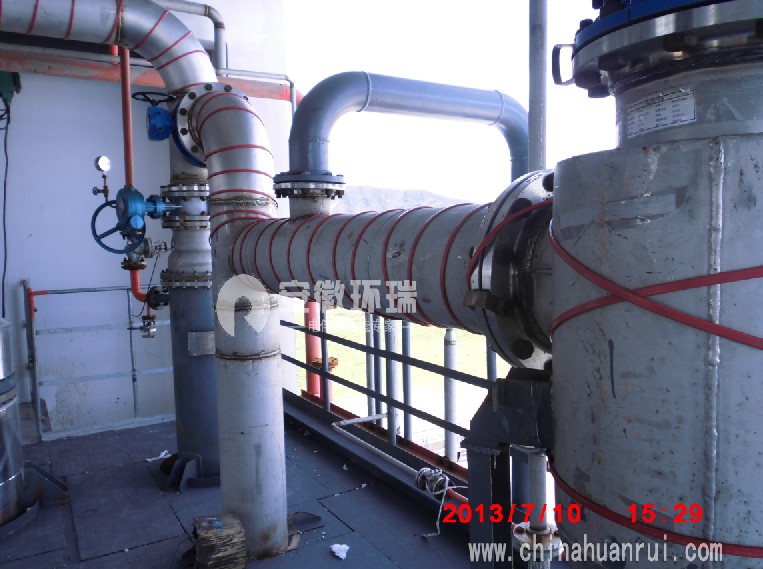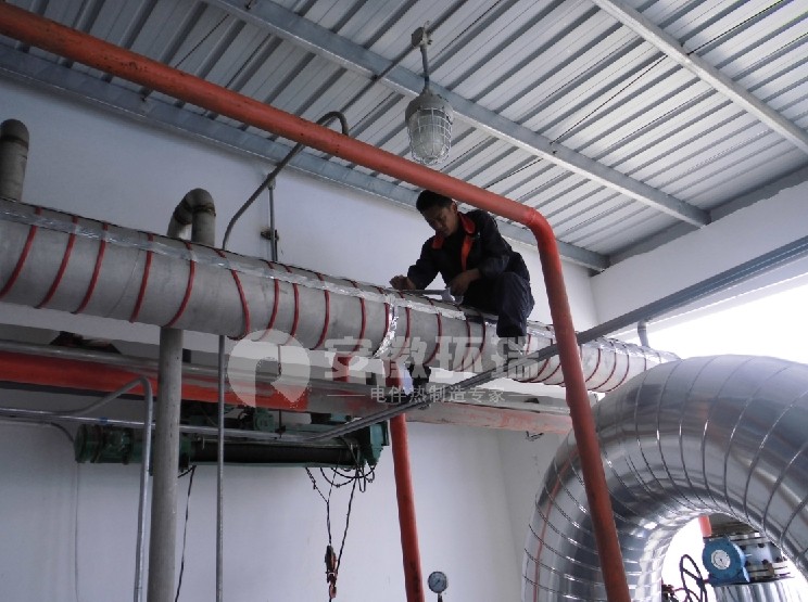 自限溫電伴熱帶可滿足不同伴熱體的安裝需要,實現自動控溫,具有安裝靈活,伴熱迅速等優點。此次長潤發涂料采用安徽環瑞中溫型自控溫電伴熱帶(它可保證其設備的維持溫度在40-80℃),MI電纜(維持溫度100℃以上)用于漏斗,管道罐體,法蘭螺栓,儀表等保溫,加熱。